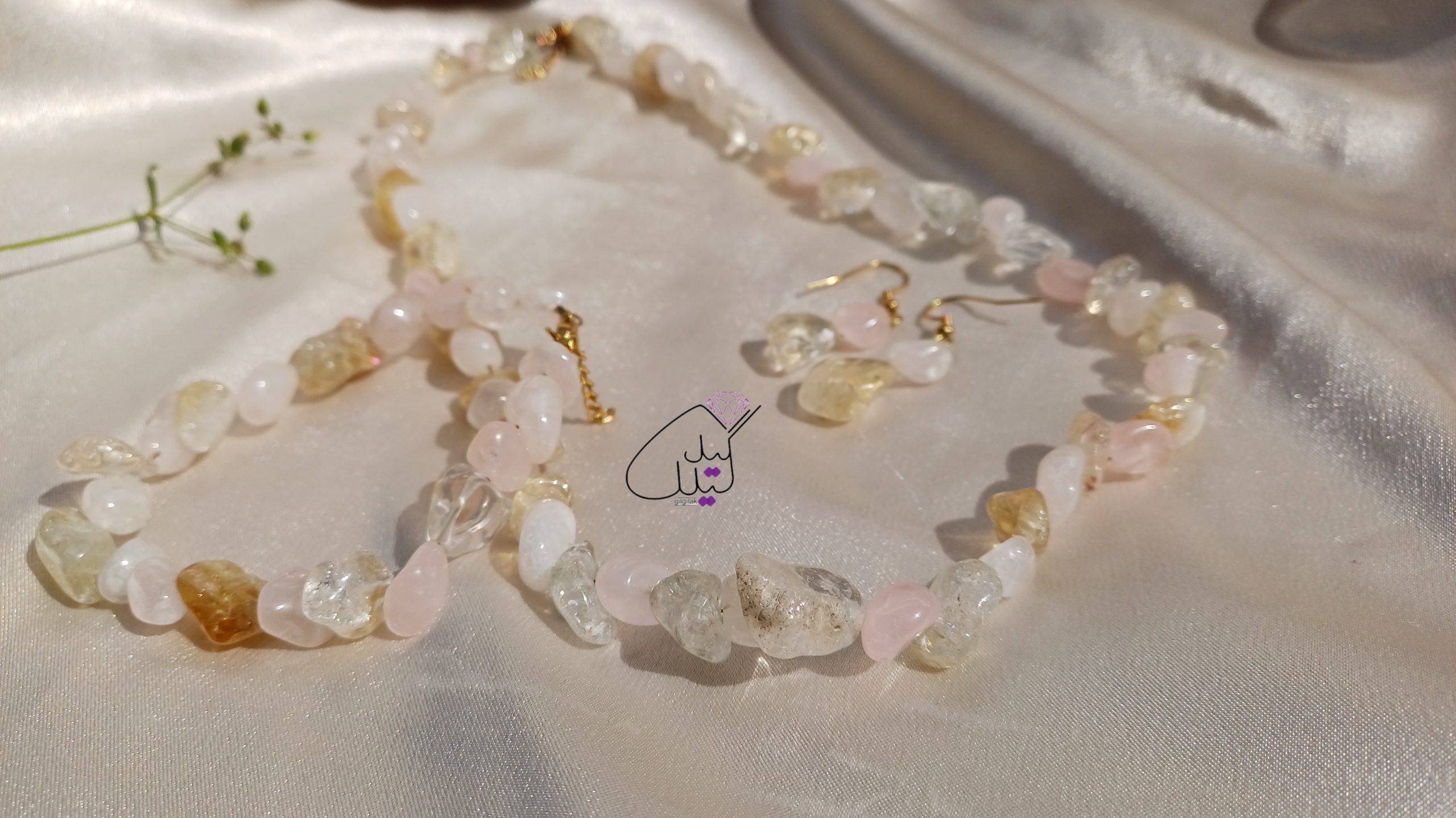 شامل دستبند و گوشواره و گردنبند ، به همراه زنجیر( استیل رنگ ثابت) اضافه برای دستبند و گردنبند و پایه گوشواره استیل